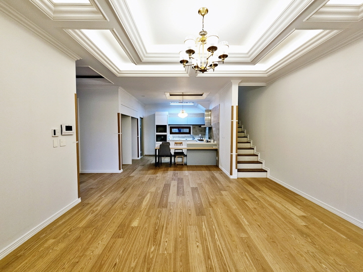 거실. 각방 시스템 에어컨 / 아일랜드 식탁 / 인덕션
