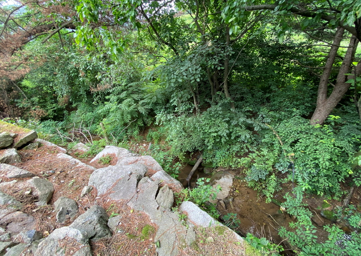 외장(벽돌) /1,2층 거실이 있는 구조 / 이중 창호 / 계곡 인접