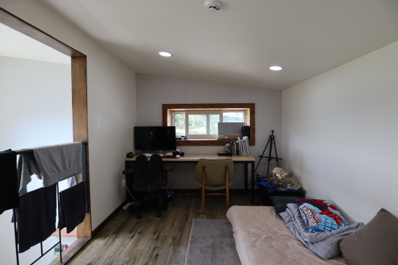 거실 높은 천장구조 / 2층 오픈형 방 / 각방 온도조절기/넓은 테크 위 비가림 시설