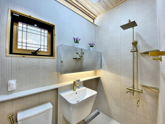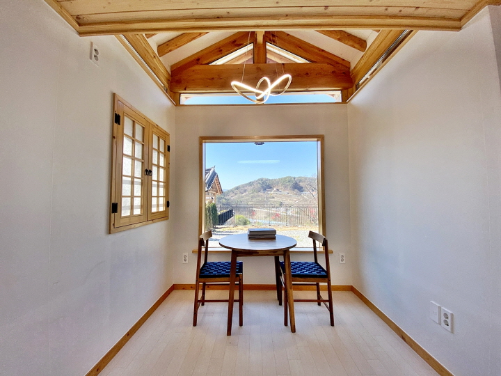 창호 3중 저방사 단열유리 / 내부 편백 루바 / 복층 형 다락 공간